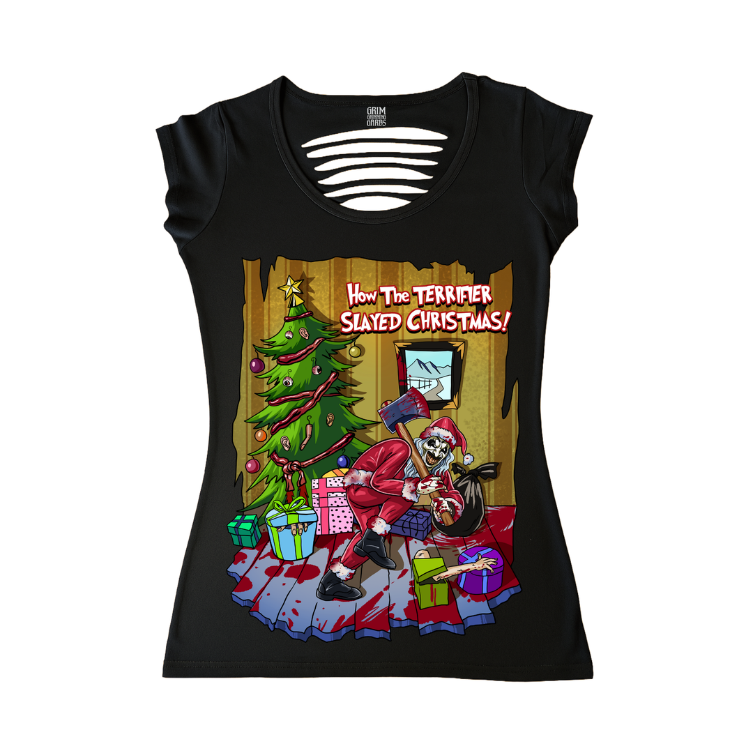 HOW THE TERRIFIER SLAYED CHRISTMAS WOMEN'S CUT BACK T-SHIRT