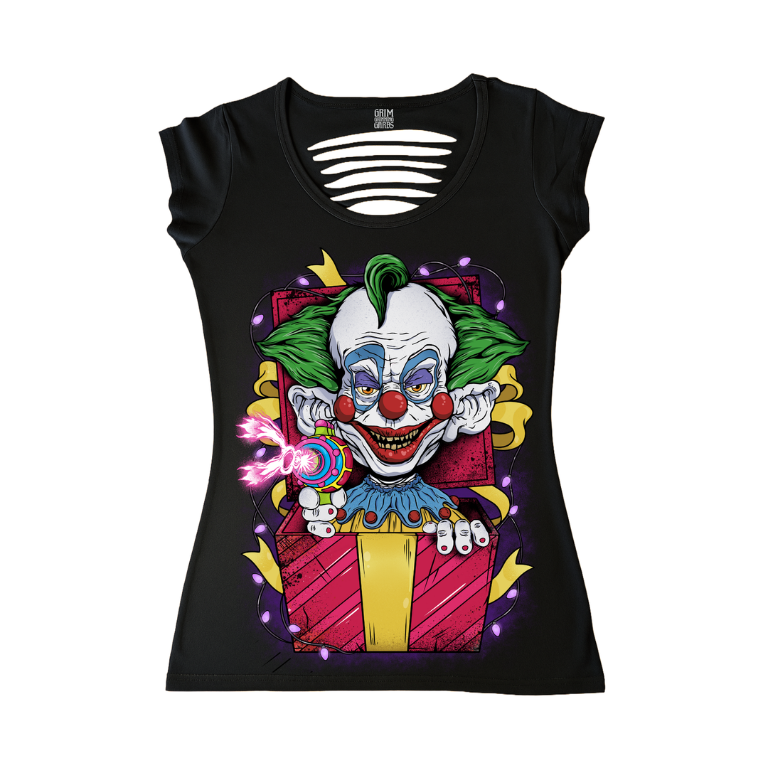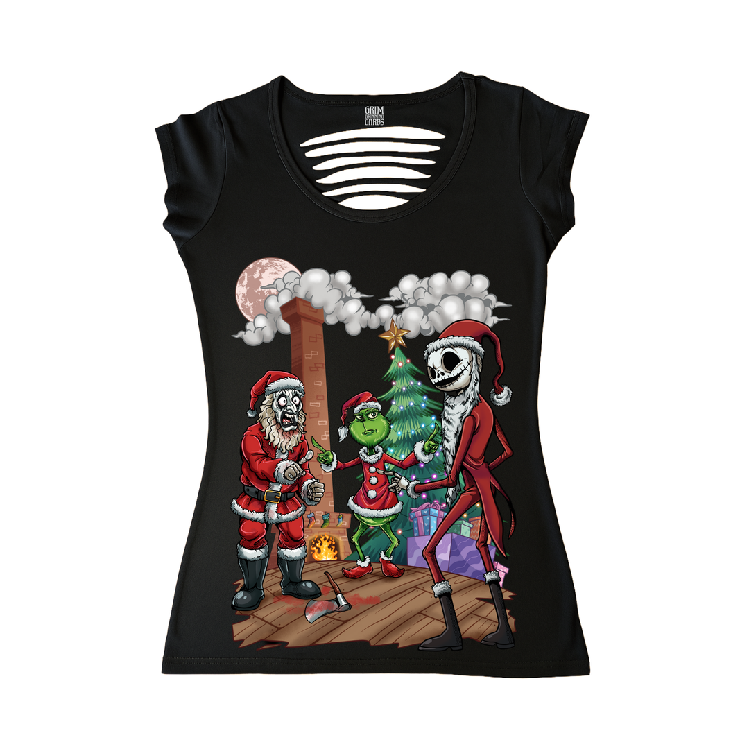 SHORTY'S KILLER CHRISTMAS SURPRISE WOMEN'S CUT BACK T-SHIRT